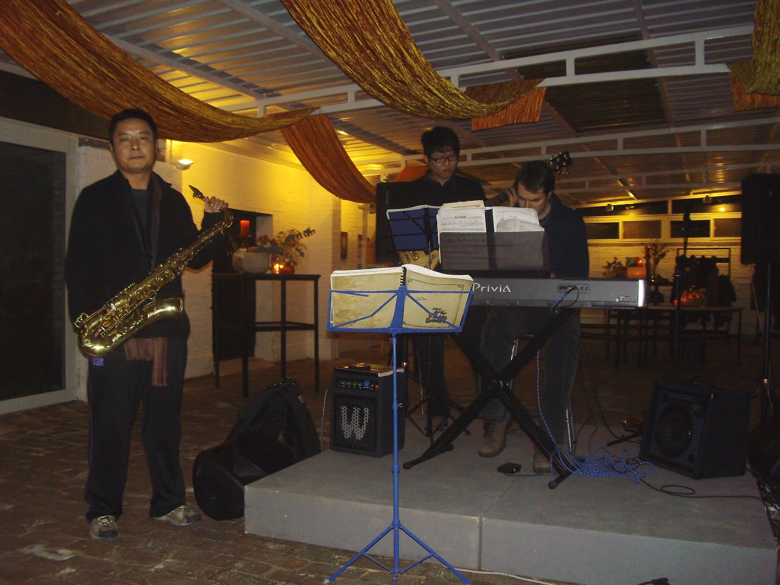 A week ago my parents sent me a Christmas package with all the essentials to make me feel as if I were home (sort of). Included were: a Christmas stocking, small gifts for the Christmas stocking, a small fiber-optic Christmas tree with changing colored lights, Christmas candy and Christmas cards and photos. It was a truly wonderful package.